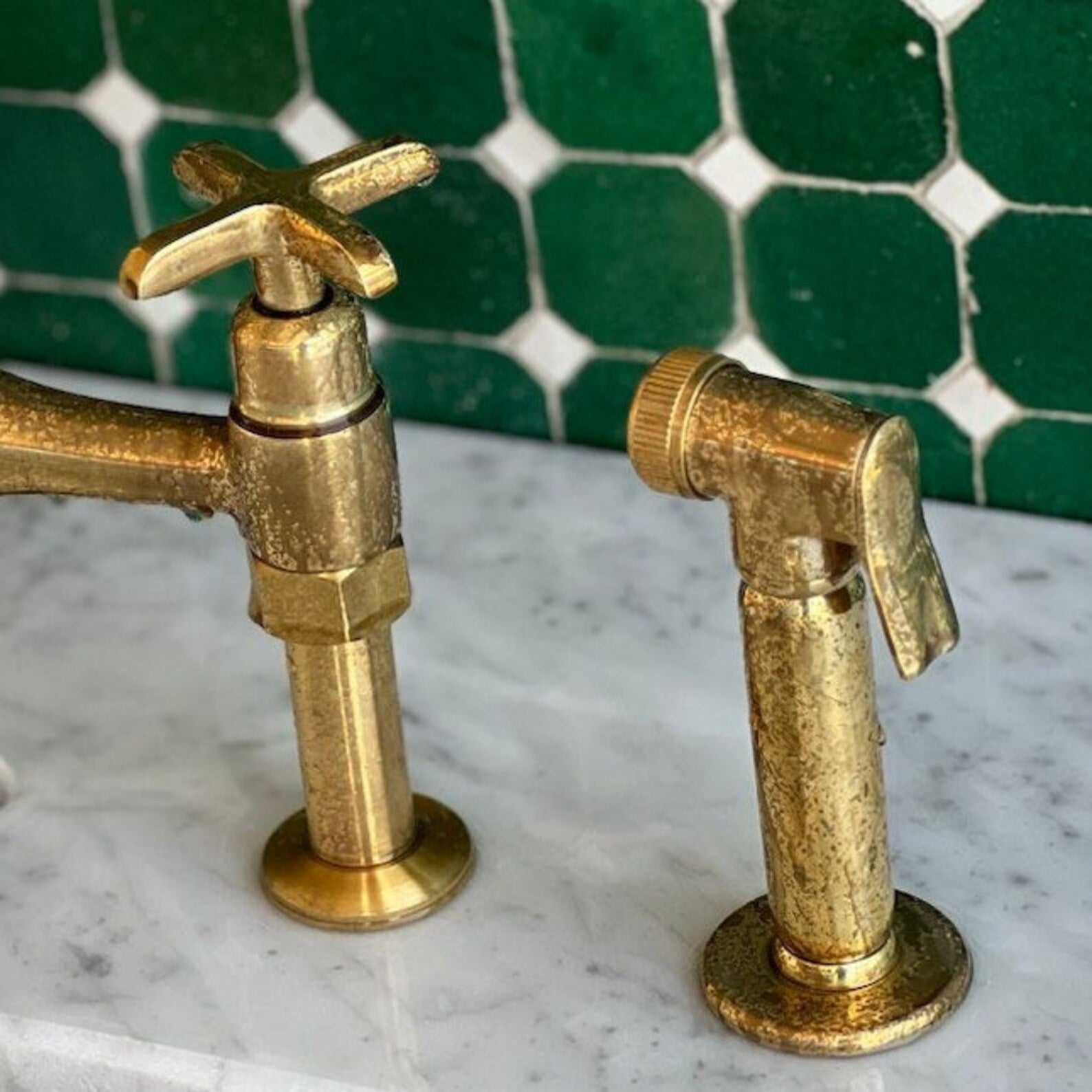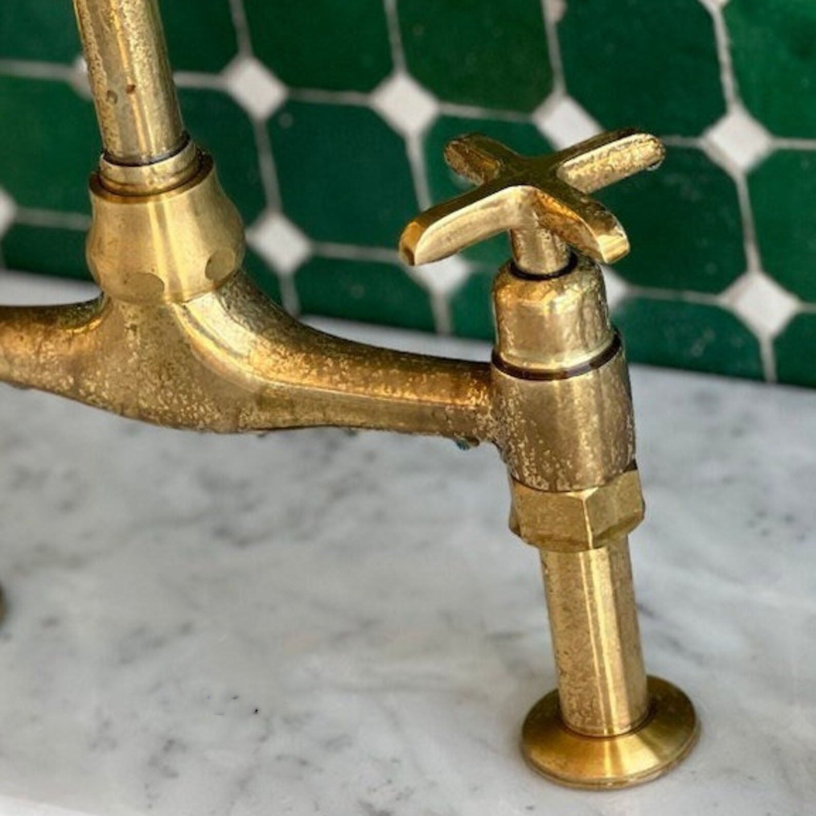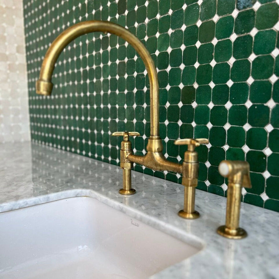 Transform your kitchen into a timeless masterpiece with our Unlacquered Brass Kitchen Faucet featuring Solid Brass Square Handles. Imbued with elegance and durability, this faucet is a statement of refined taste and enduring quality. The unlacquered brass finish lends a distinctive charm, developing a rich patina over time for a truly bespoke look